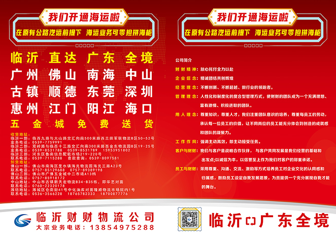 (物流城)财财物流 临沂-广东,整箱海柜、零担拼柜